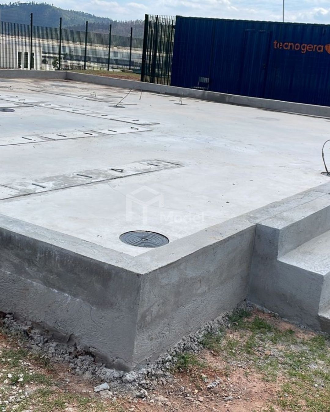 O projeto contemplou o nivelamento de precisão e concretagem de lajes de suporte para equipamentos externos, instalação de gradis de segurança e sistemas de drenagem periférica. Engenharia aplicada para garantir a estabilidade estrutural necessária em ambientes de operação crítica, seguindo rigorosamente os padrões técnicos de segurança e durabilidade industrial.