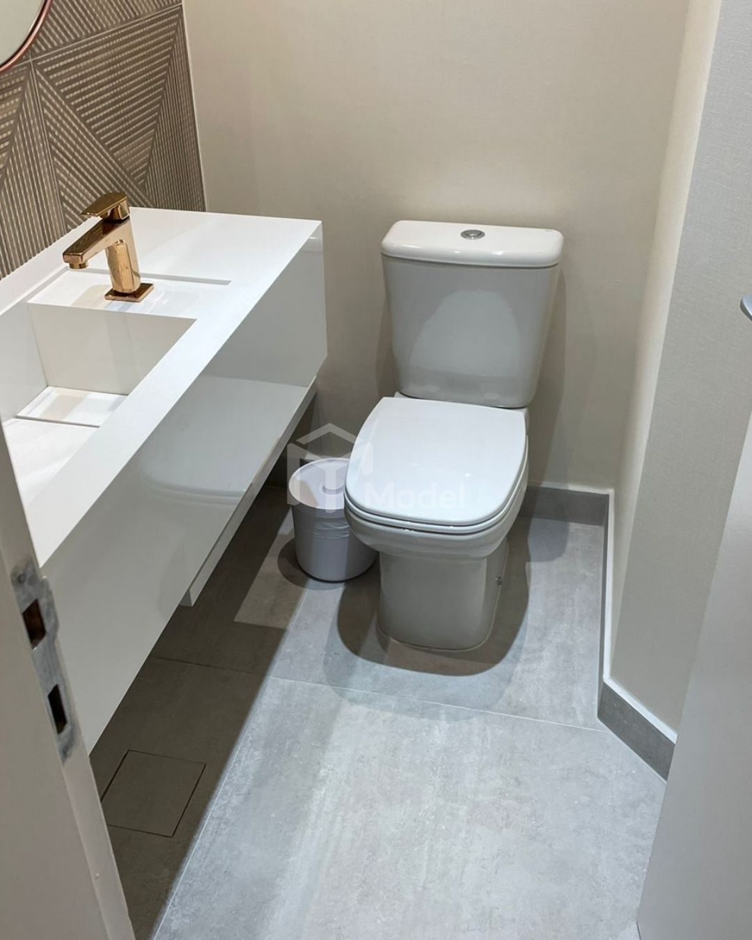 O projeto priorizou a aplicação técnica de revestimentos cerâmicos em áreas úmidas, garantindo estanqueidade, segurança e um acabamento estético alinhado ao conceito moderno da unidade. Soluções inteligentes para ambientes de alto tráfego que exigem fácil manutenção e resistência.