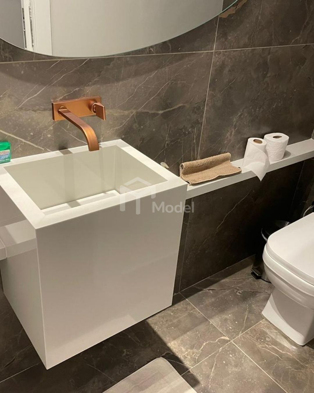 O projeto contemplou a renovação de revestimentos em áreas úmidas com nichos embutidos, atualização de louças e metais, além de um acabamento refinado em pintura e marcenaria. Uma entrega planejada para unir estética contemporânea e funcionalidade, transformando o imóvel em um ambiente pronto