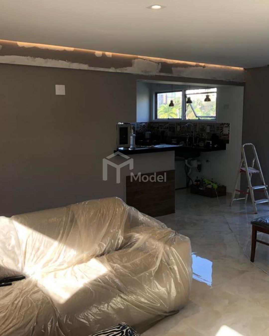 A execução englobou a instalação de revestimentos premium, iluminação técnica embutida em sancas e marcenaria sob medida em toda a unidade. Destaque para a cozinha gourmet integrada e salas de estar planejadas para o máximo aproveitamento de luz natural e conforto térmico, entregando um imóvel com acabamento impecável e pronto para o morador.