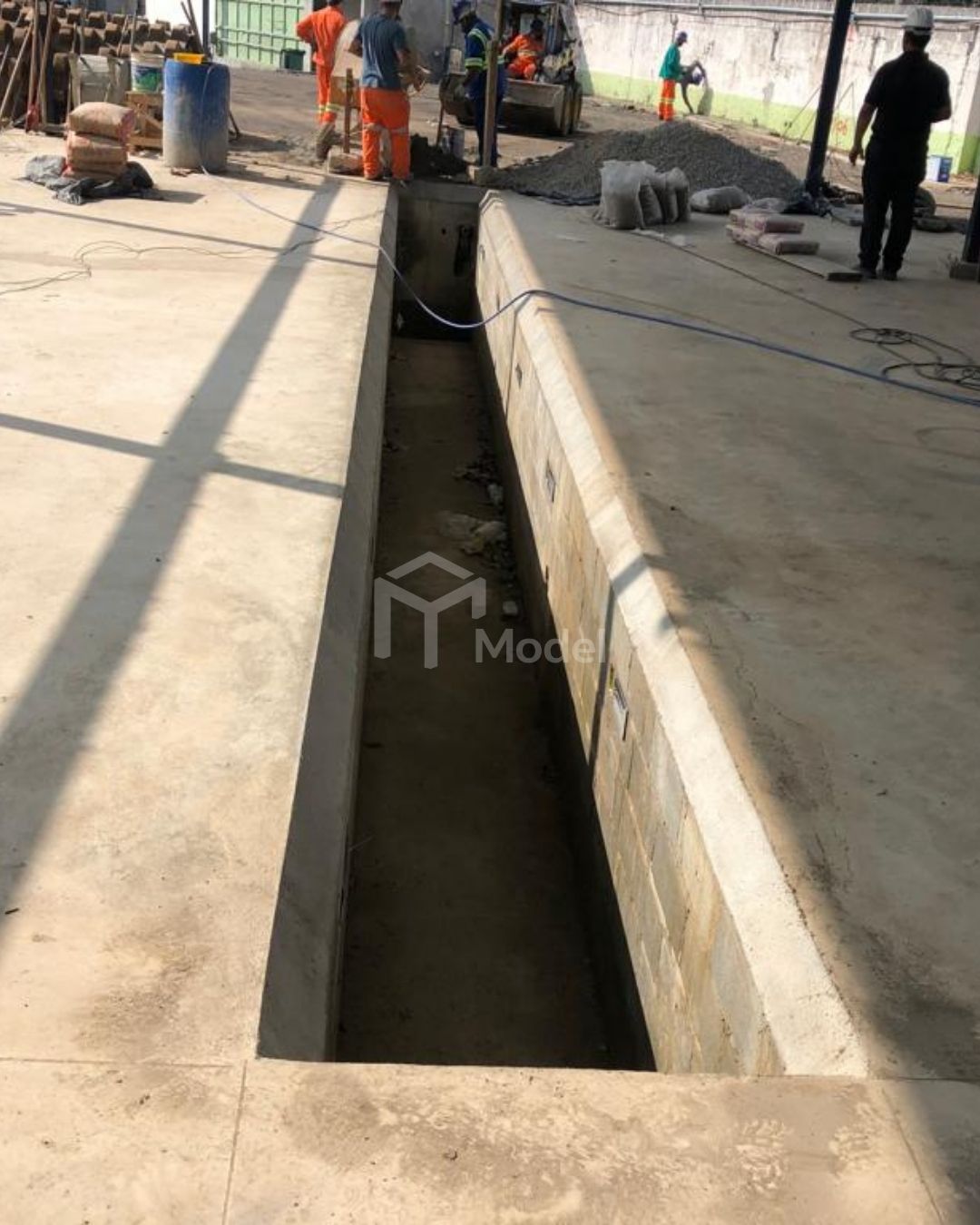 Execução especializada de infraestrutura para pavimentação e logística industrial. O projeto contempla a construção de canaletas técnicas de drenagem, reforço estrutural de base para maquinário pesado